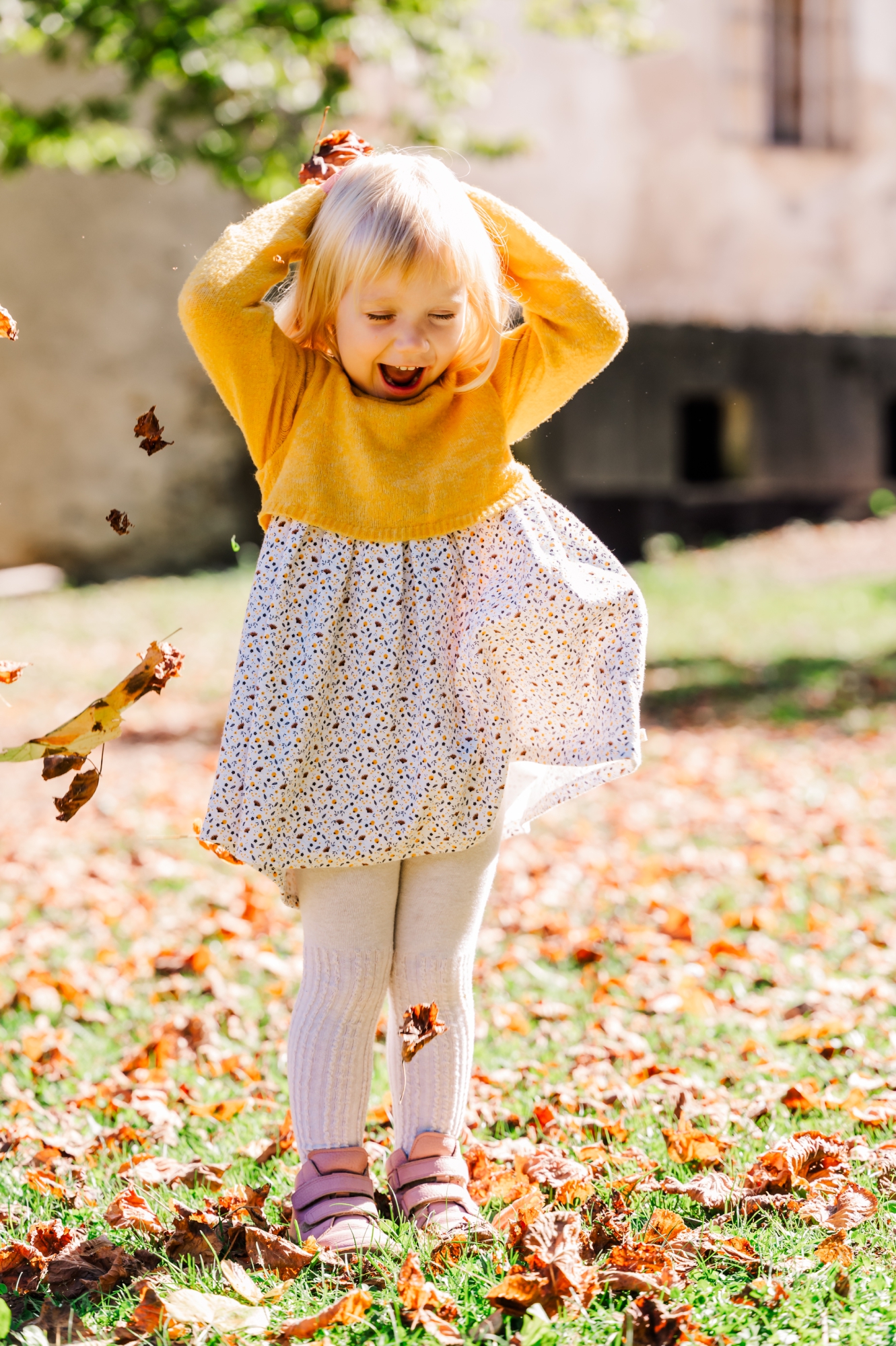 Skupaj smo uživali v metanju jesenskega listja pred polhograjsko graščino in uživali v toplem jesenskem sončku.